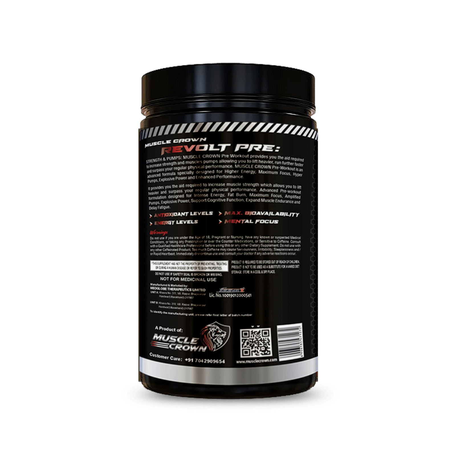 Muscle Crown Revolt Pre Workout is a potent pre-workout supplement designed to boost your energy, focus, and performance. Formulated with a blend of powerful ingredients such as caffeine, beta-alanine, and citrulline malate, it helps enhance endurance, strength, and mental clarity. Each serving is crafted to provide a significant energy boost, enabling you to push through the most intense workouts. The 33-serving pack ensures you have a reliable supply to fuel your training sessions.