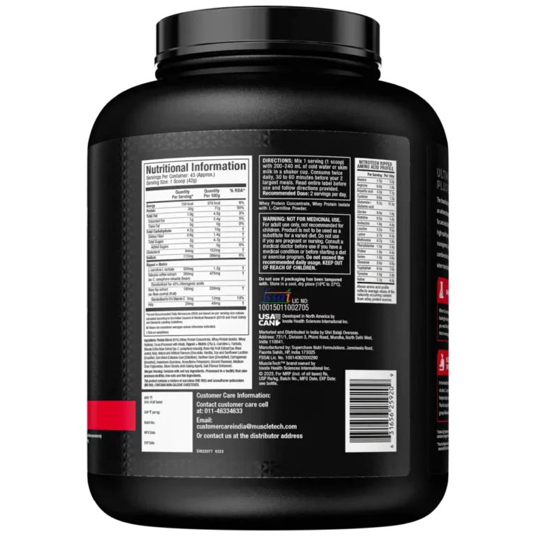 Muscletech Nitrotech Ripped is a unique protein supplement designed for those looking to build muscle and lose fat simultaneously. This formula combines high-quality whey protein with weight management ingredients like L-carnitine, CLA, and green tea extract. Each serving provides 30 grams of protein along with these powerful fat-burning components. The 4Lb pack ensures a long-lasting supply of this effective protein supplement, making it ideal for those on a cutting phase.
